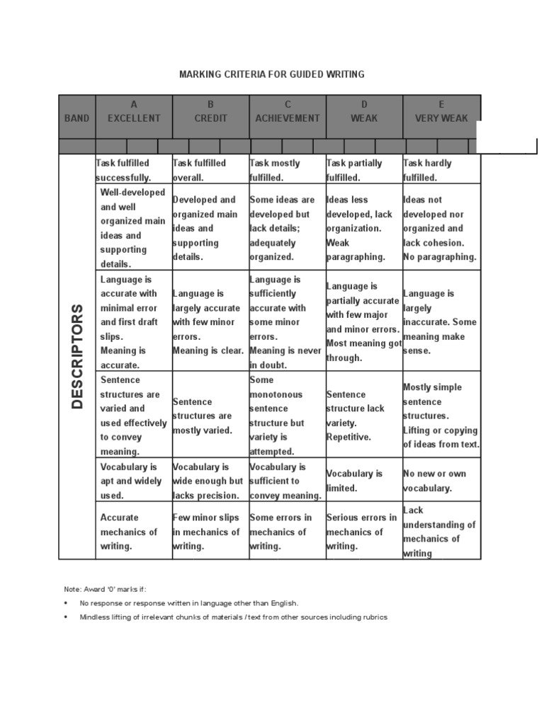 Marking Criteria For Guided Writing