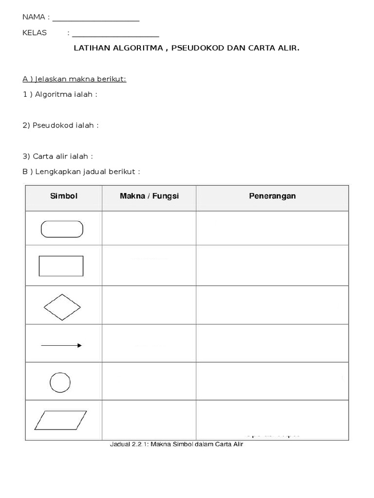 Algoritma Pseudokod Carta Alir Worksheet