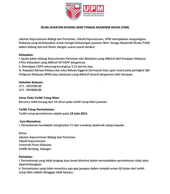Jawatan Kosong Di Universiti Putra Malaysia Upm 19 Julai 2015 Appjawatan Malaysia