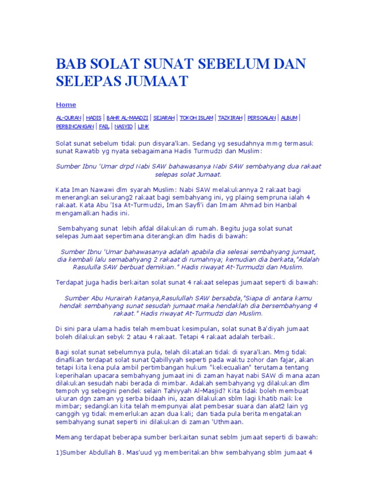 Agama Corner Solat Sunat Jumaat Solat Solat Sunat