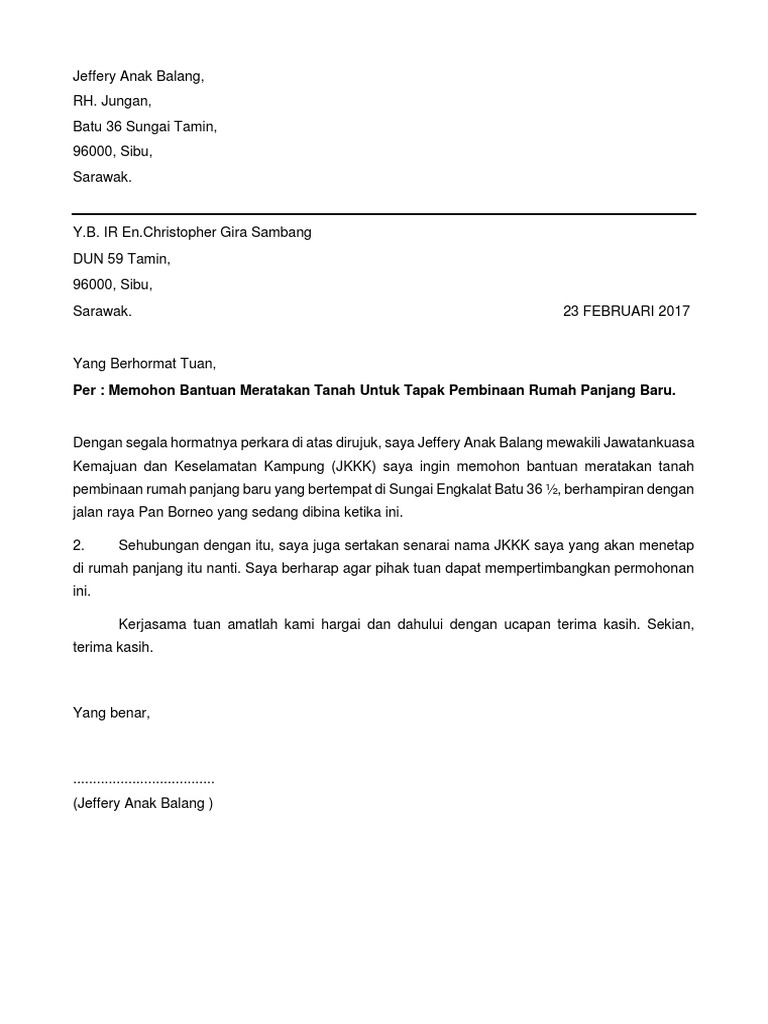 Contoh Surat Rasmi Permohonan Bantuan Baik Pulih Rumah Surat Rasmi M