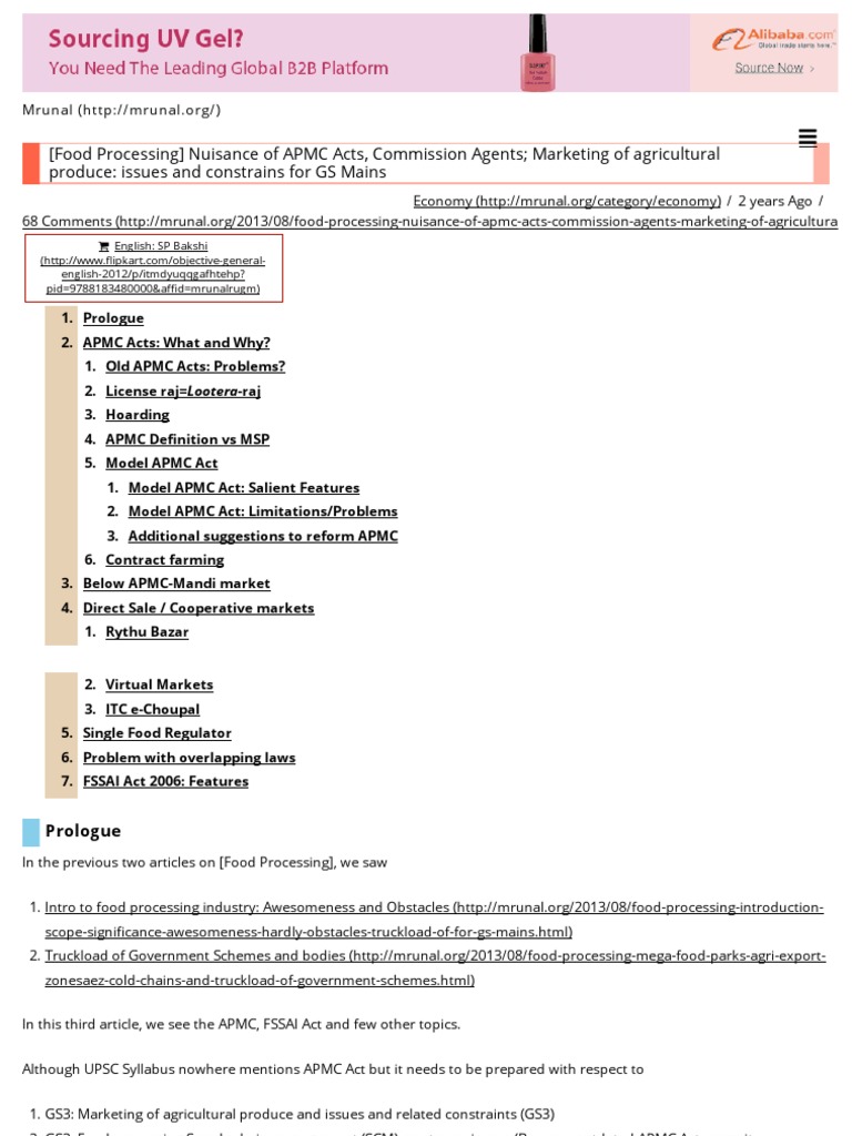 Apmc Act Features Reforms For Food Processing Industry Food Safety Foods
