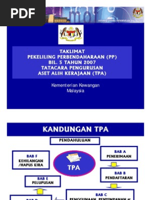 2 definisi aset 2 1 aset aset ialah sumber yang dikawal oleh entiti hasil daripada peristiwa. Surat pekeliling setiausaha kewangan negeri bil 2 2013. Dokumen ms iso 9001. Tatacara pengurusan aset alih kerajaan tpa ini adalah bertujuan untuk menguruskan harta modal dan inventori yang meliputi penerimaan pendaftaran penggunaan penyimpanan dan pemeriksaan penyelenggaraan pelupusan dan kehilangan dan hapus kira.