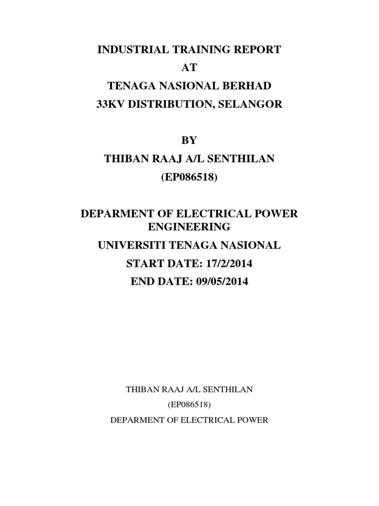 Internship Report Tnb Distribution Selangor Transformer Power Engineering