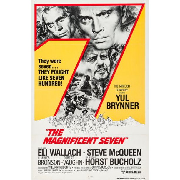 Amazon Com The Magnificent Seven Movie Poster 20 X 40 Inches 51cm X 102cm 1960 Style B Yul Brynner Steve Mcqueen Robert Vaughn James Coburn Charles Bronson Horst Buchholz Prints Posters Prints
