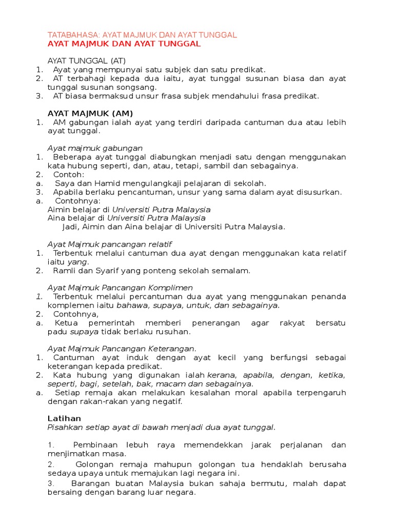 Ayat Majmuk Dan Ayat Tunggal