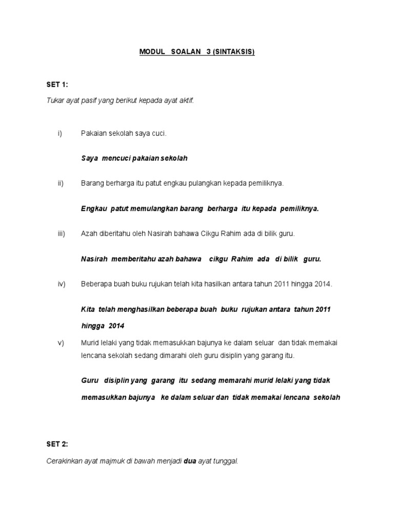 Kompilasi Soalan Spm 3b Jawapan Pdf Http Cikgusazali Blogspot Com Soalan 3 B Spm 2005 Kemahiran Sintaksis Tukar Ayat Pasif Di Bawah Kepada Ayat Aktif Course Hero