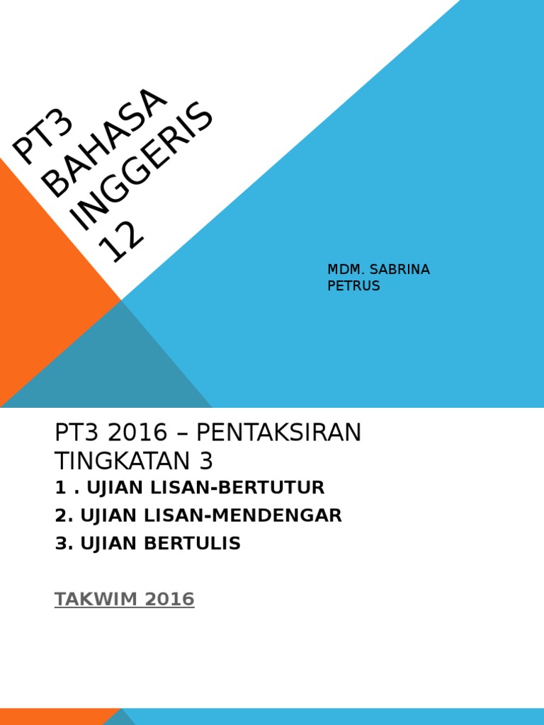 Ujian Lisan Bahasa Inggeris Pt3 2016