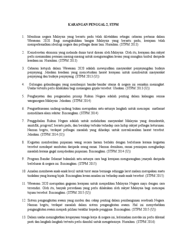 Analisis Esei 2019 Pdf Soalan Stpm Tahun Tahun Lepas Penggal 2 Esei 2013 2018 Tahun Tema Stpm 2013 Integrasi Dan Perpaduan Ekonomi Wawasan 2020 Sosial Course Hero