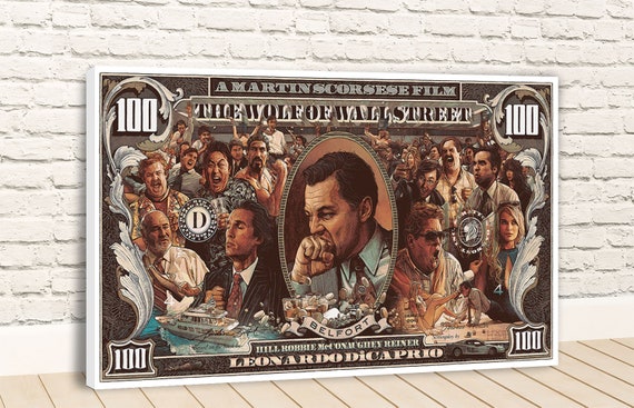Wolf Of Wall Street 100 Dollar Bill Note Canvas Wall Art Etsy