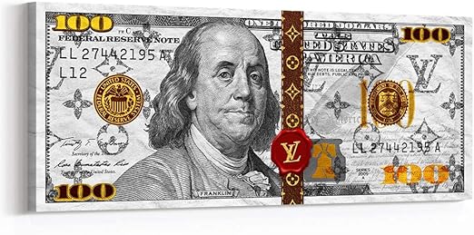 Amazon Com Inktuitive Louis Stacks Inspirational Wall Art Couture 100 Dollar Bill Canvas Print Motivational Decor For Bedroom Living Room Business Office 48 X 20 Inches Posters Prints