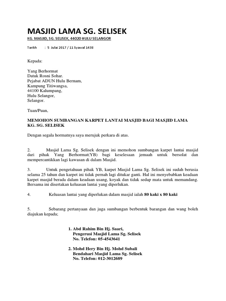 Contoh Surat Rasmi Memohon Sumbangan Wang Surat Rasmi 1